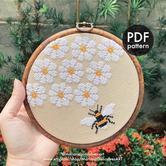 Source : www.yumpu.comBee and Daisies, Modern, Easy, Beginner, Cross Stitch, PDF Pattern